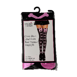 official music legs brand - cross bone and satin bow opaque thigh hi