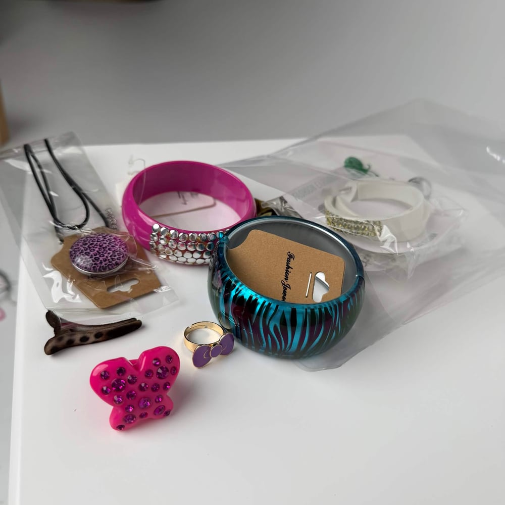 THESE ARE SO FUN!! if you like animal print, big chunky bracelets & rings, big earrings, hair clips, neon colors, you will love everything you get!!