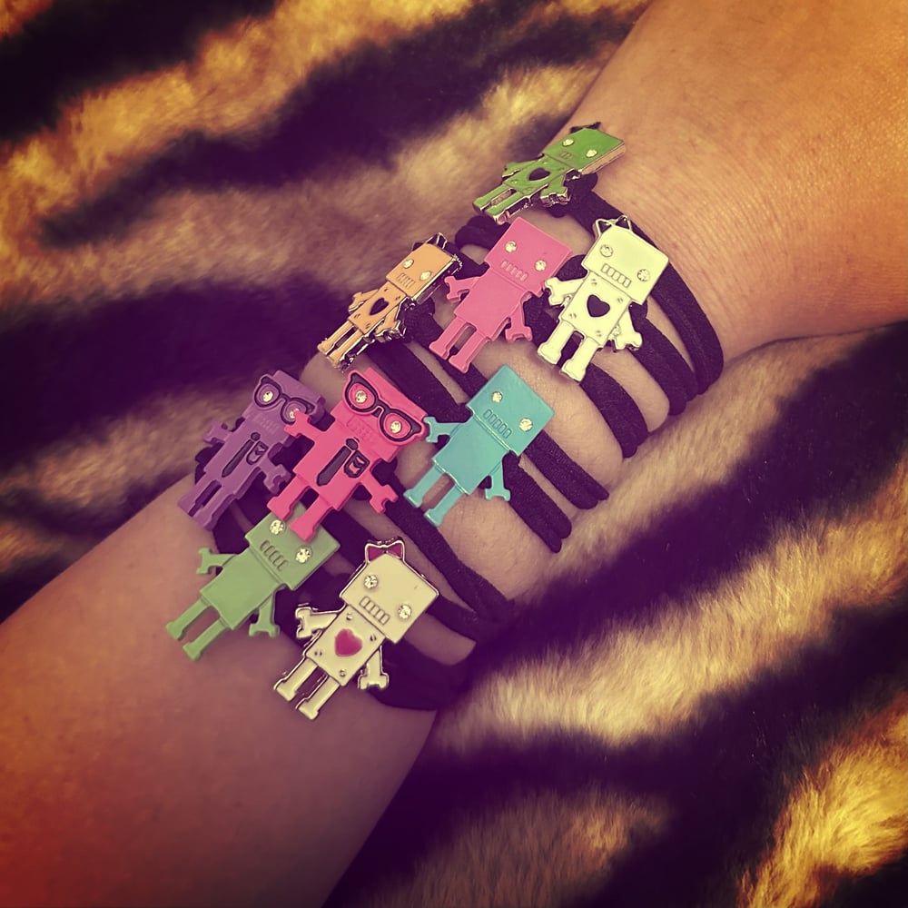 you will receive one RANDOM mystery robot bracelet! many different options and colors you could get! if you reaaaally want something in the photo or a specific color you can definitely leave a message in the order notes at checkout, but no promises that i will have it available >.